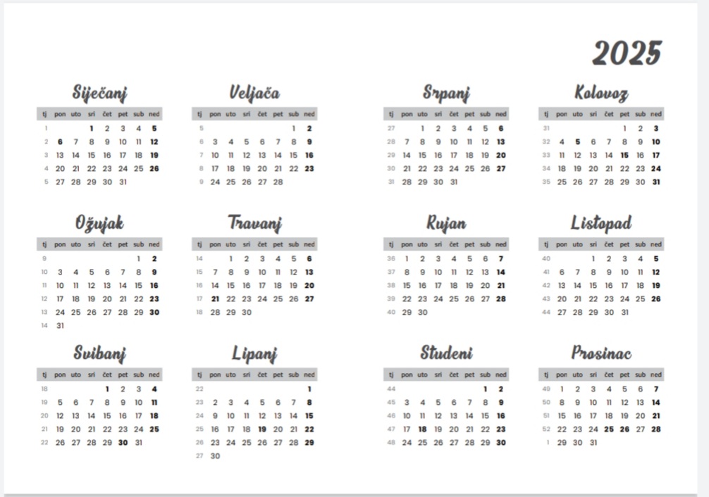 Na kraju rokovnika se nalazi kalendar za 2022., 2023., 2024. i 2025. godinu.